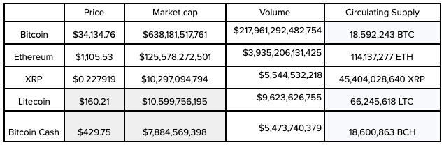 Daily market update: Bitcoin surges past $35,000 to new all-time high ?