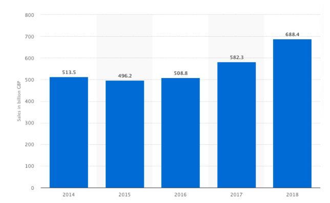 (Above: E-commerce sales in the United Kingdom (UK) from 2014 – 2018, Statista)