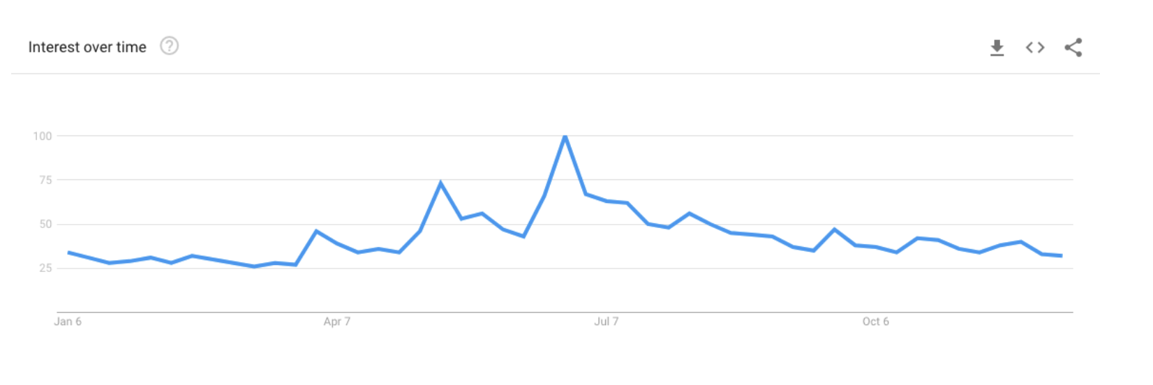 (Source: Google Trends – Bitcoin search term interest worldwide throughout 2019)