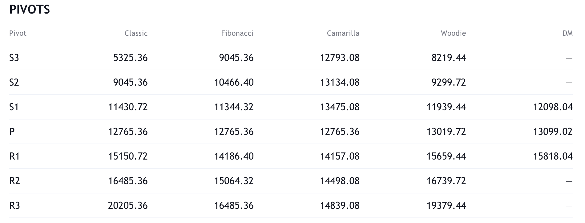 The daily high was $15,785.14. The daily low was $14,865.53.