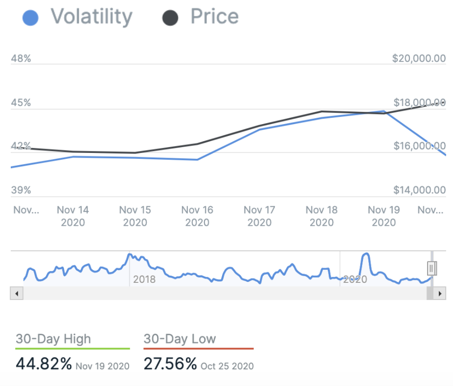 We closed yesterday, 19 November, 2020, at a price of $17,817.09– up from $17,804.01 the day before. That’s an increase of 0.07%. It’s the highest closing price since 18 December, 2017. At time of writing, the price of one bitcoin is $18,156.90.