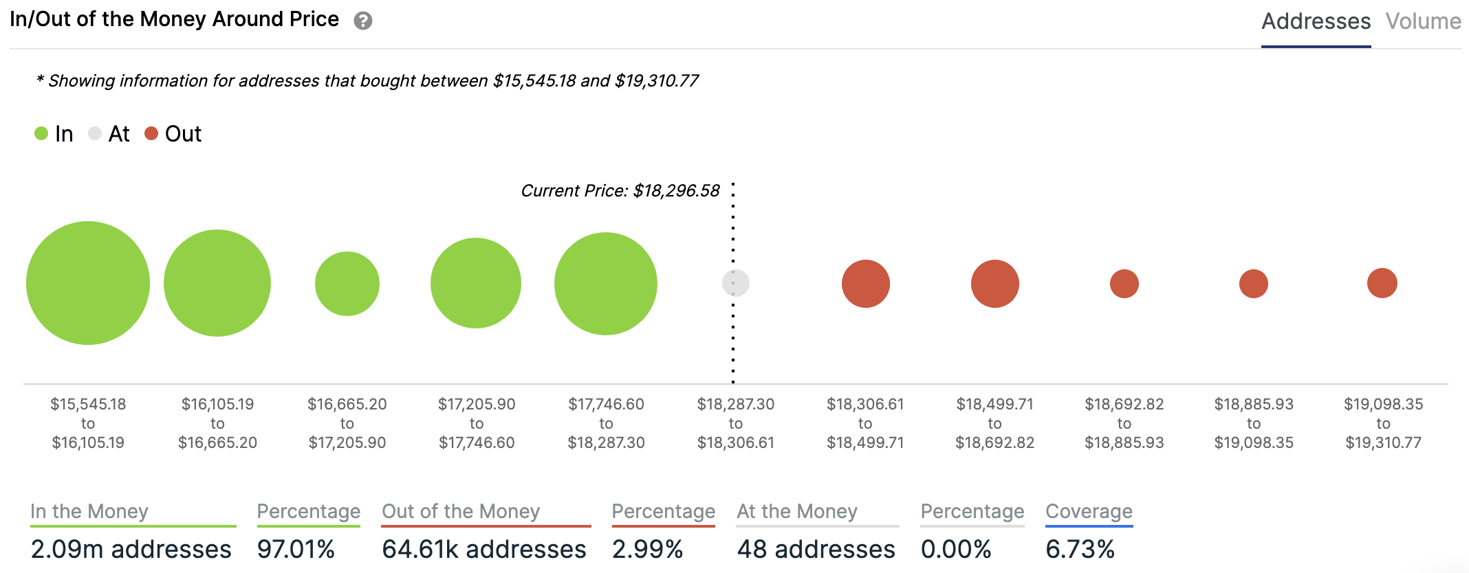 For any address with a balance of tokens, ITB identifies the average price (cost) at which those tokens were purchased and compares it with the current price. If the current price is higher than average cost, address is ‘In the Money’. If the current price is lower than the average cost, the address is ‘Out of the Money’.