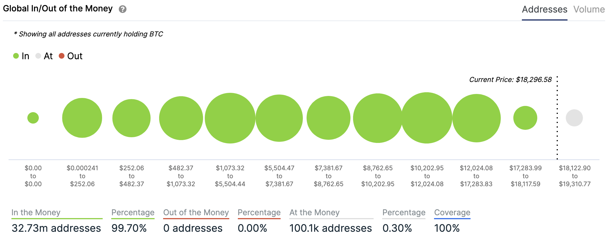 For any address with a balance of tokens, ITB identifies the average price (cost) at which those tokens were purchased and compares it with the current price. If the current price is higher than average cost, address is ‘In the Money’. If the current price is lower than the average cost, the address is ‘Out of the Money’.