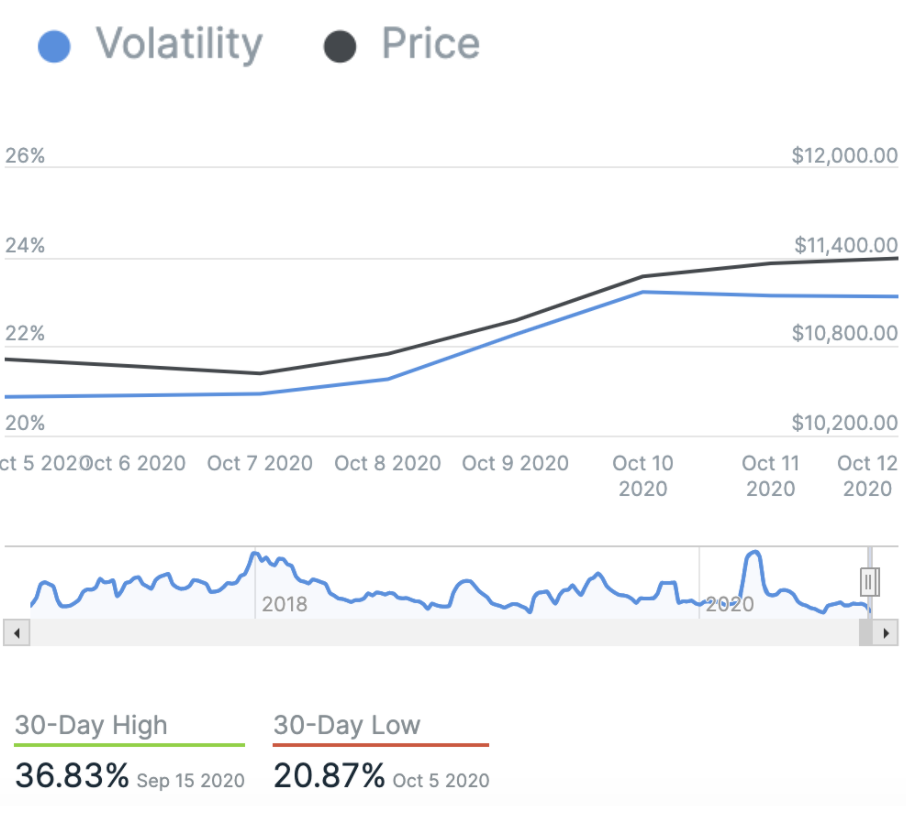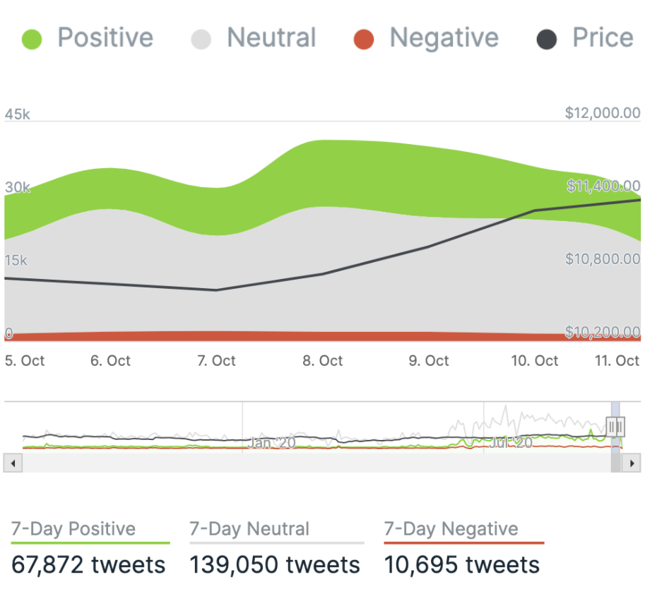 We closed yesterday, 11 October, 2020, at a price of $11,384.18, with a daily high of $11,428.81 and a low of $11,288.63. That’s the highest daily closing price since 2 September.