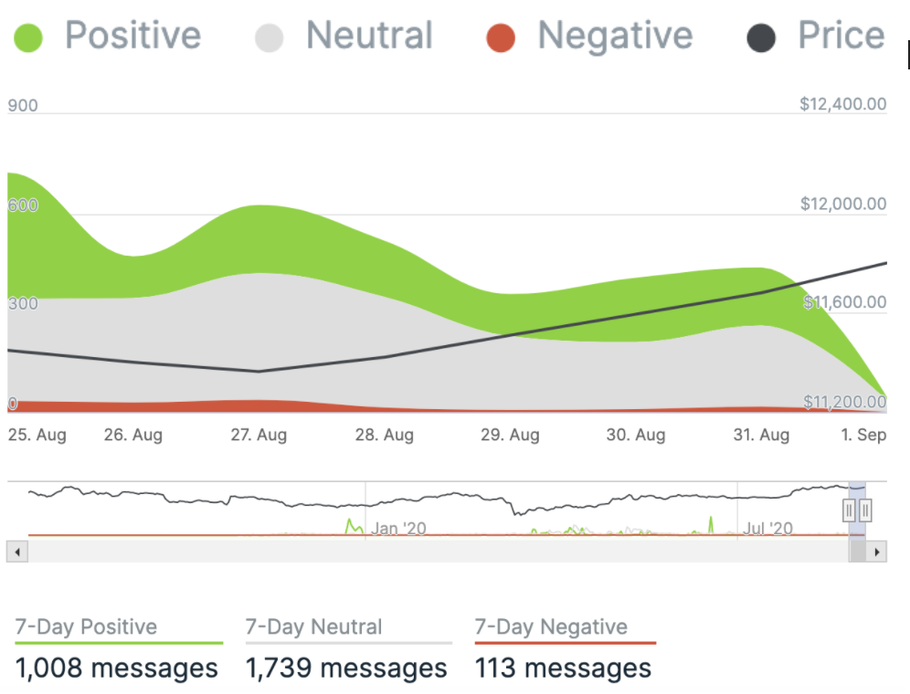 This is a metric from intotheblock.com designed to show whether messages sent in Telegram have a positive, neutral or negative connotation.