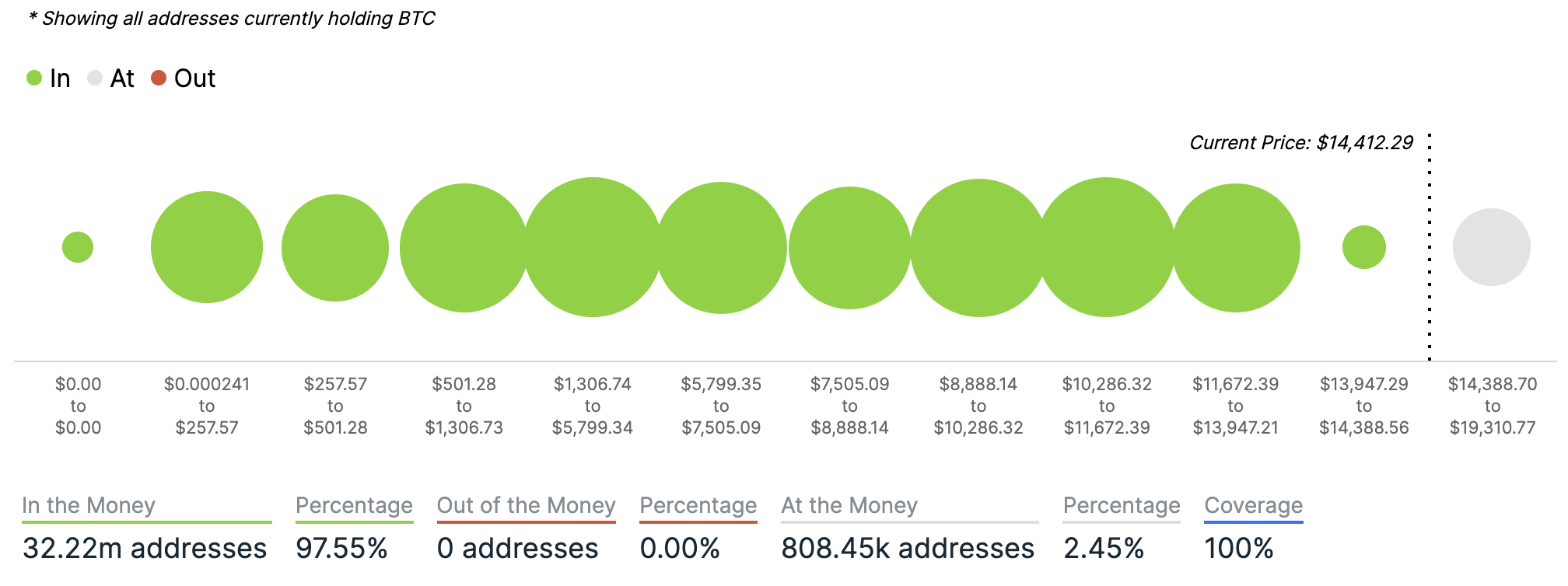 For any address with a balance of tokens, ITB identifies the average price (cost) at which those tokens were purchased and compares it with the current price. If the current price is higher than average cost, address is ‘In the Money’. If the current price is lower than the average cost, the address is ‘Out of the Money’.