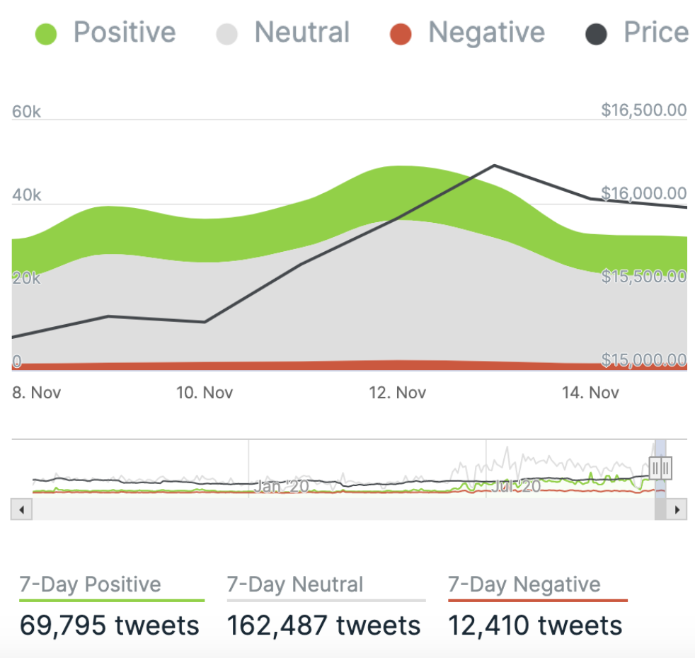 Yesterday, there were 10,154 tweets sent with a positive connotation towards bitcoin, 20,120 with a neutral connotation, and 1,778 were negative.