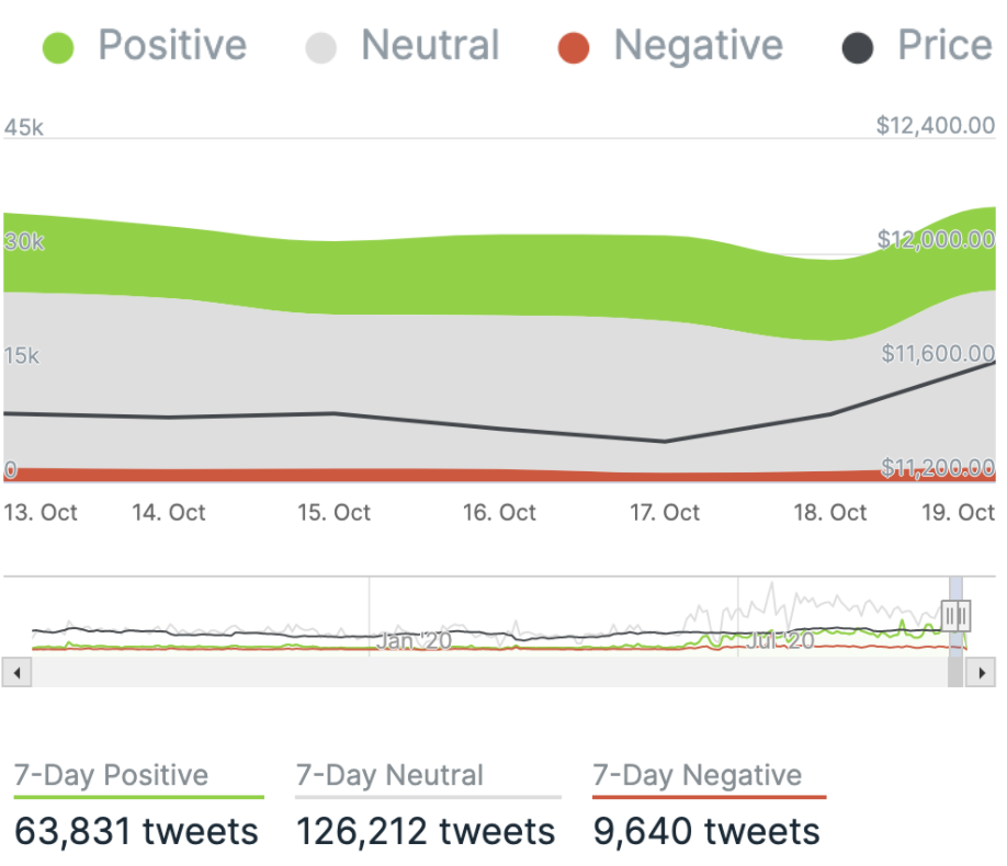 We closed yesterday, 19 October, 2020, at a price of $11,742.04, with a daily high of $11,799.09 and a low of $11,408.29. That’s the highest closing price since 1 September.