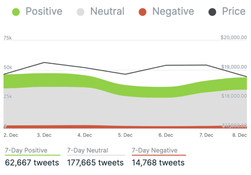 Yesterday, there were 10,523 tweets sent with a positive connotation towards bitcoin, 30,337 with a neutral connotation, and 2,676 were negative.