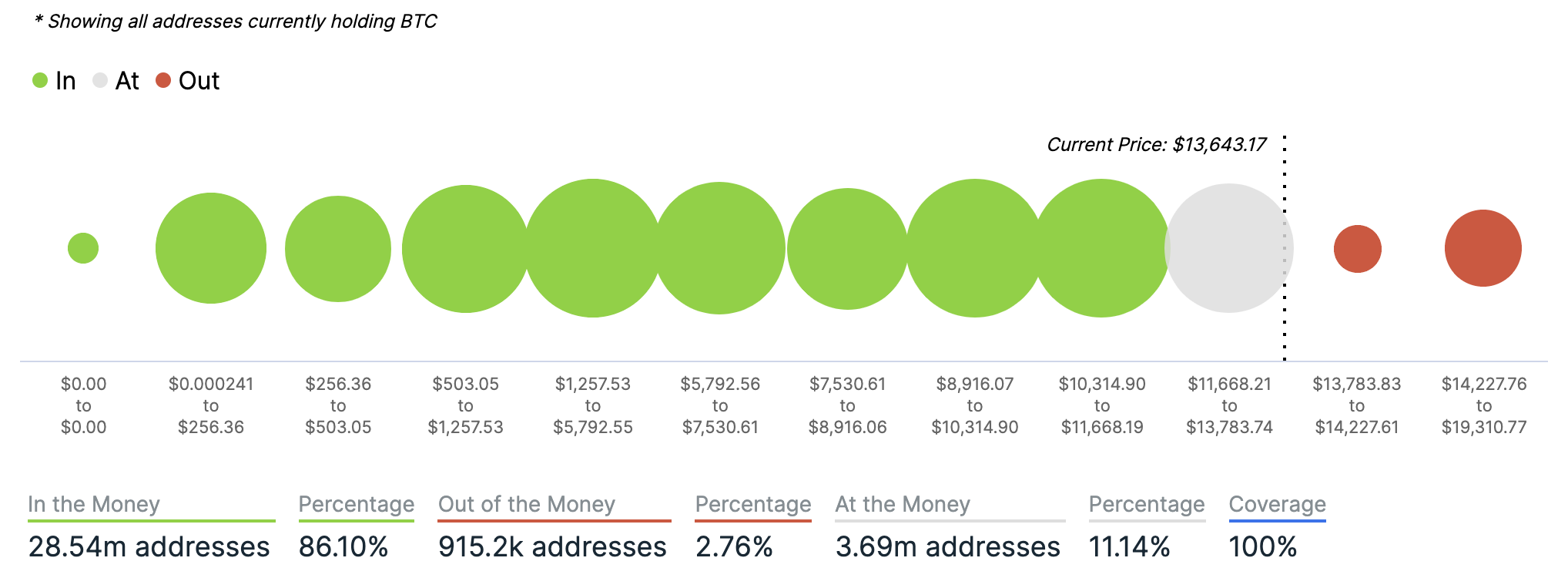 For any address with a balance of tokens, ITB identifies the average price (cost) at which those tokens were purchased and compares it with the current price. If the current price is higher than average cost, address is ‘In the Money’. If the current price is lower than the average cost, the address is ‘Out of the Money’.