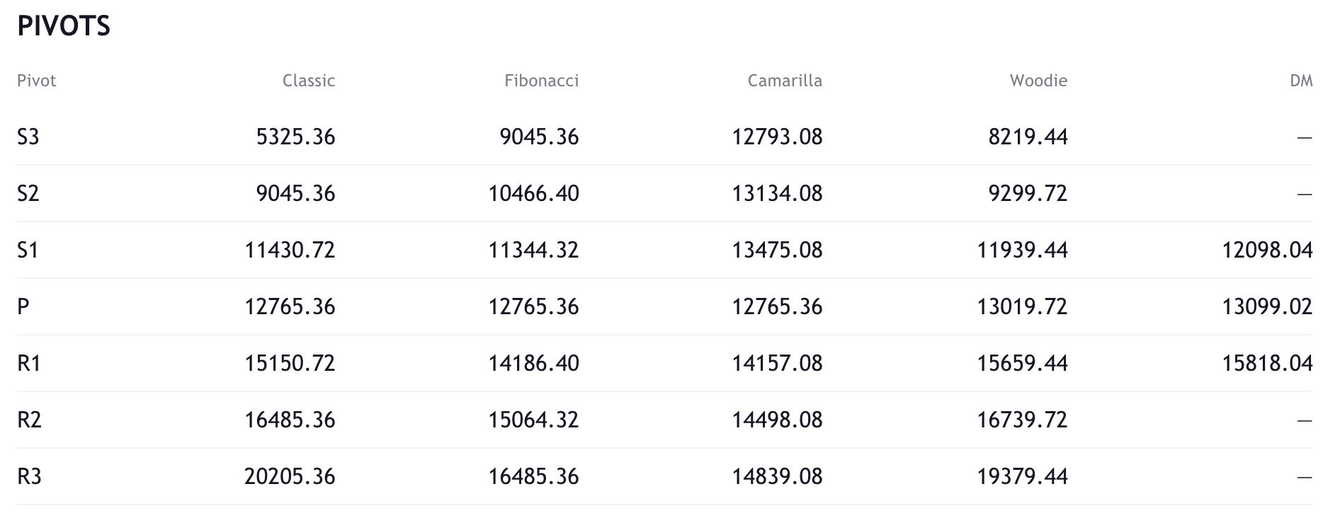 The daily high was $13,984.98, with bulls again testing $14,000 to no avail. The daily low was $13,325.44, which is the lowest daily low since 30 October.