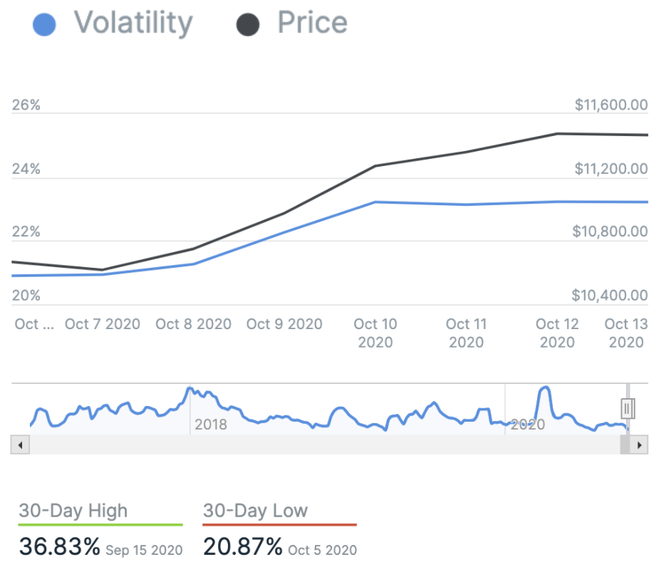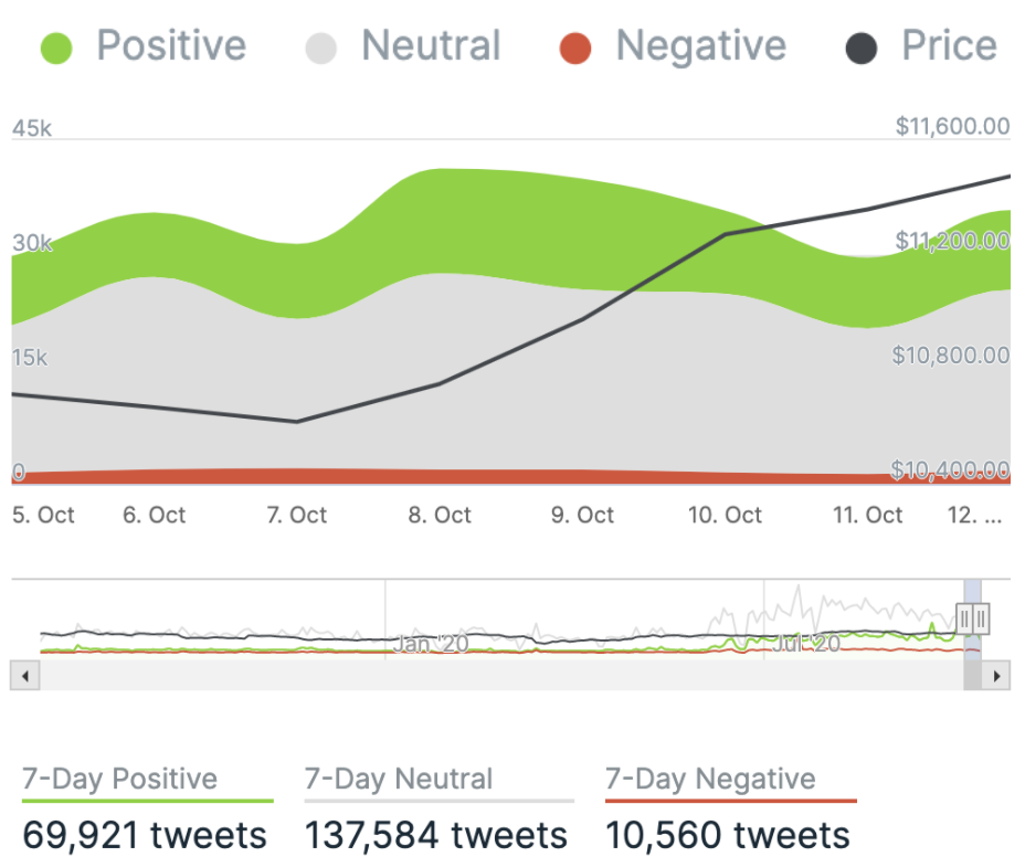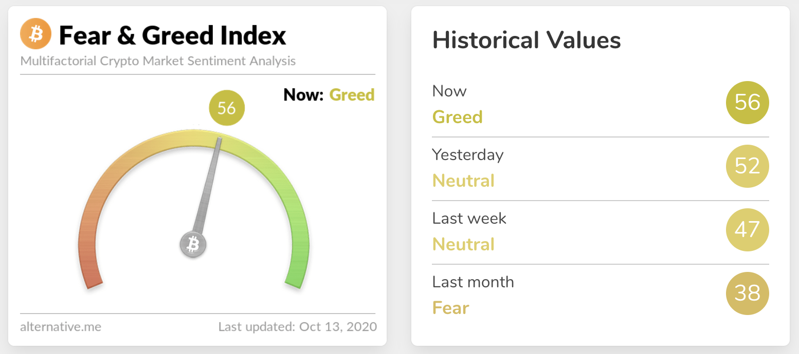 We closed yesterday, 12 October, 2020, at a price of $11,555.36, with a daily high of $11,698.47 and a low of $11,240.69. That’s the highest daily closing price since 1 September.