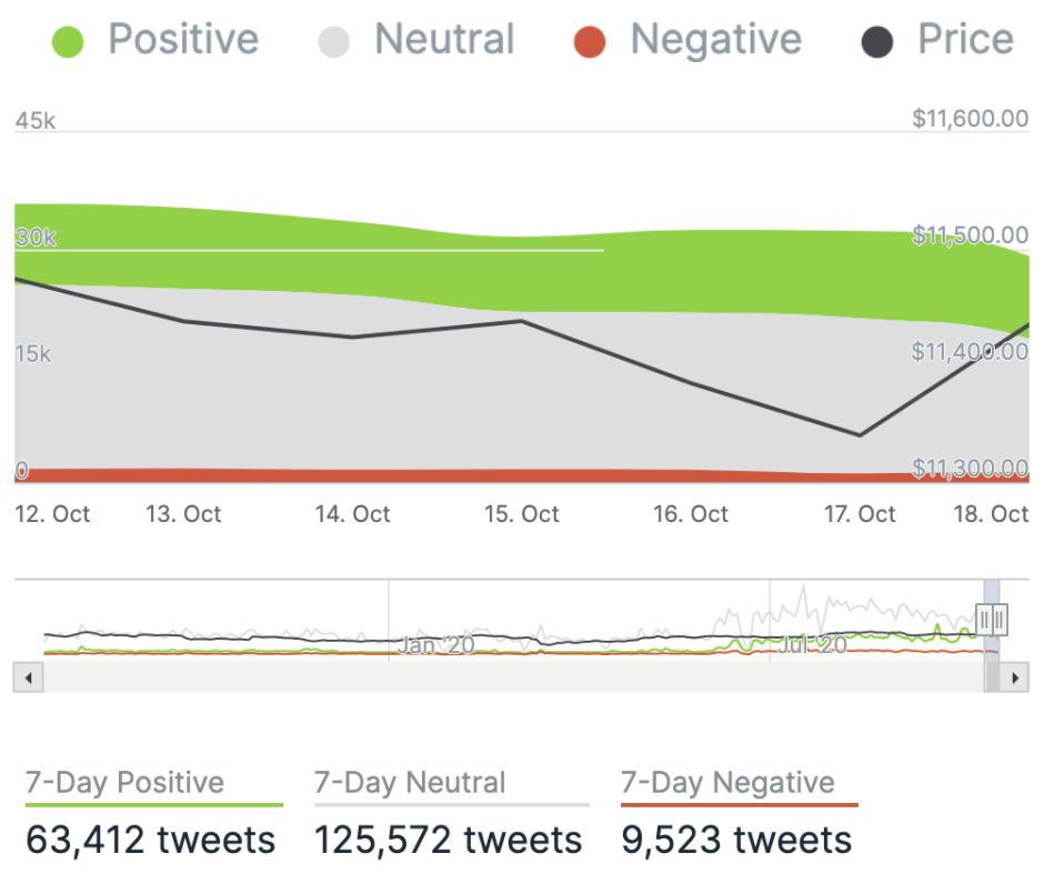 Yesterday, there were 10,653 tweets sent with a positive connotation towards bitcoin, 17,116 with a neutral connotation, and 1,377 were negative.