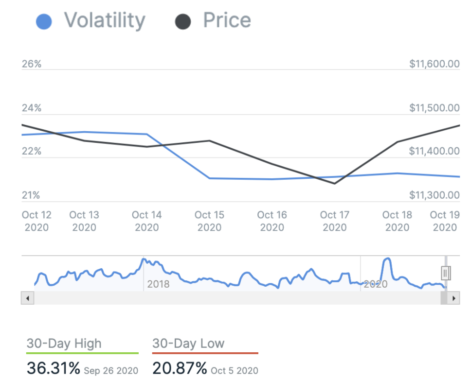 We closed yesterday, 18 October, 2020, at a price of $11,483.36, with a daily high of $11,483.36 and a low of $11,347.58.