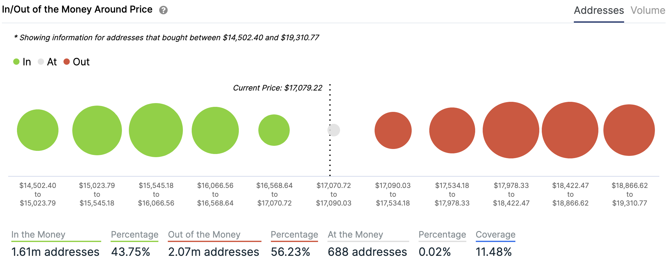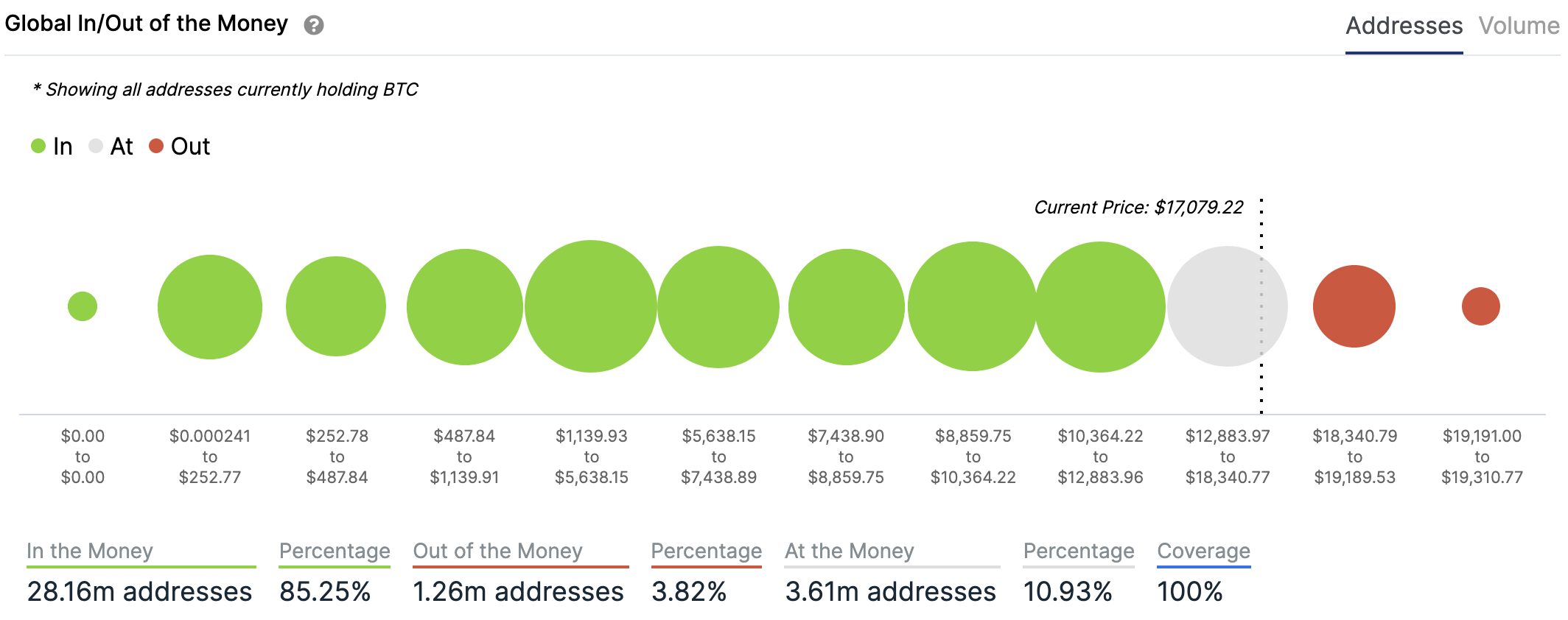 For any address with a balance of tokens, ITB identifies the average price (cost) at which those tokens were purchased and compares it with the current price. If the current price is higher than average cost, address is ‘In the Money’. If the current price is lower than the average cost, the address is ‘Out of the Money’.
