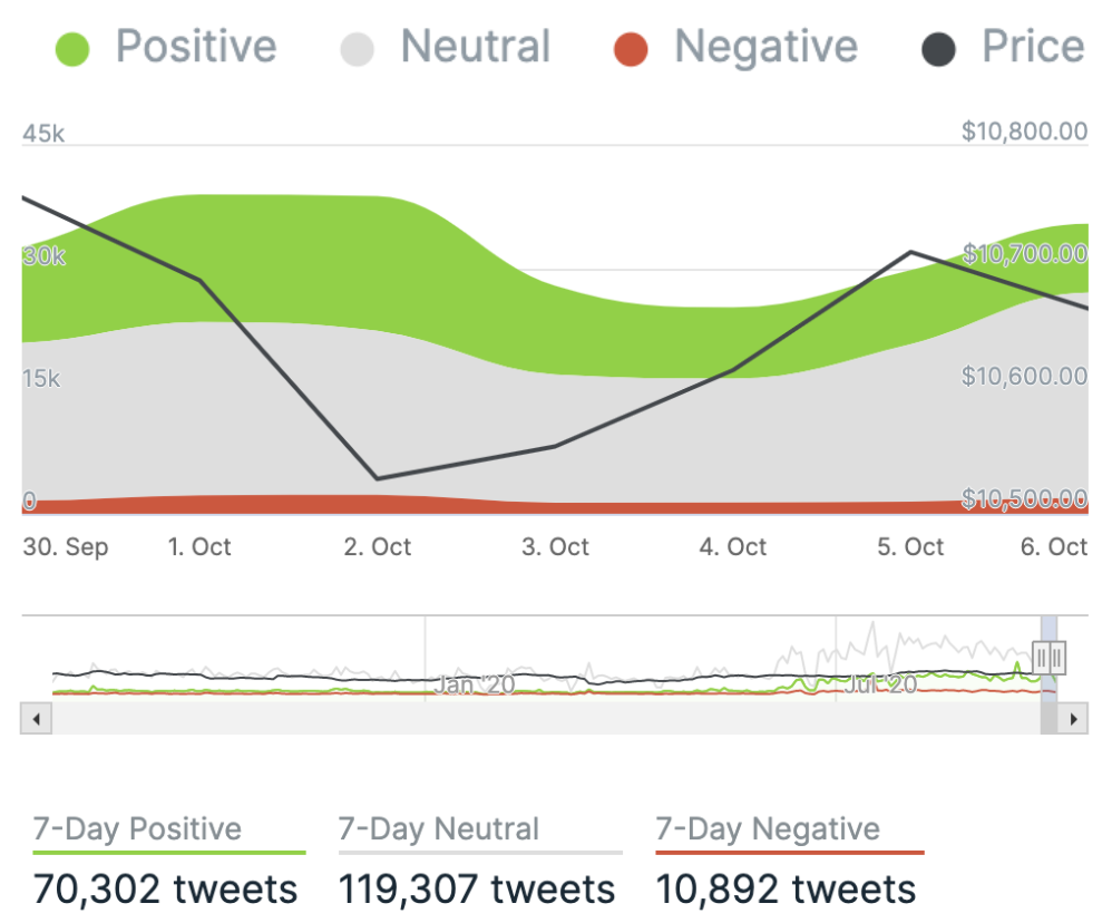 We closed yesterday, 6 October, 2020, at a price of $10,621.66, with a daily high of $10,803.46 and a low of $10,565.20.