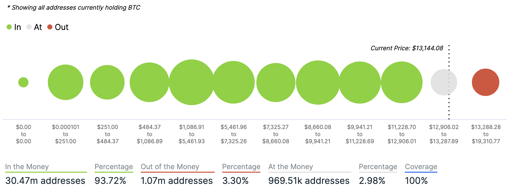 For any address with a balance of tokens, ITB identifies the average price (cost) at which those tokens were purchased and compares it with the current price. If the current price is higher than average cost, address is ‘In the Money’. If the current price is lower than the average cost, the address is ‘Out of the Money’.