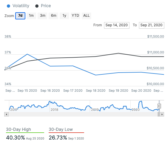 We closed yesterday, 20 September, 2020, at a price of $10,938.27 – with a daily high of $11,095.87 and a low of $10,814.48.