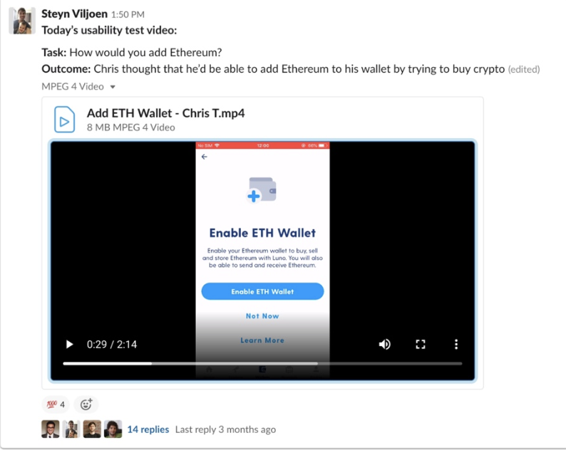 Previously, for example, we’ve broken down hours of customer research into a series of 1-3 minute snippets. We also regularly share and talk about learnings from store reviews, tickets, and things we pick up in the wild.
