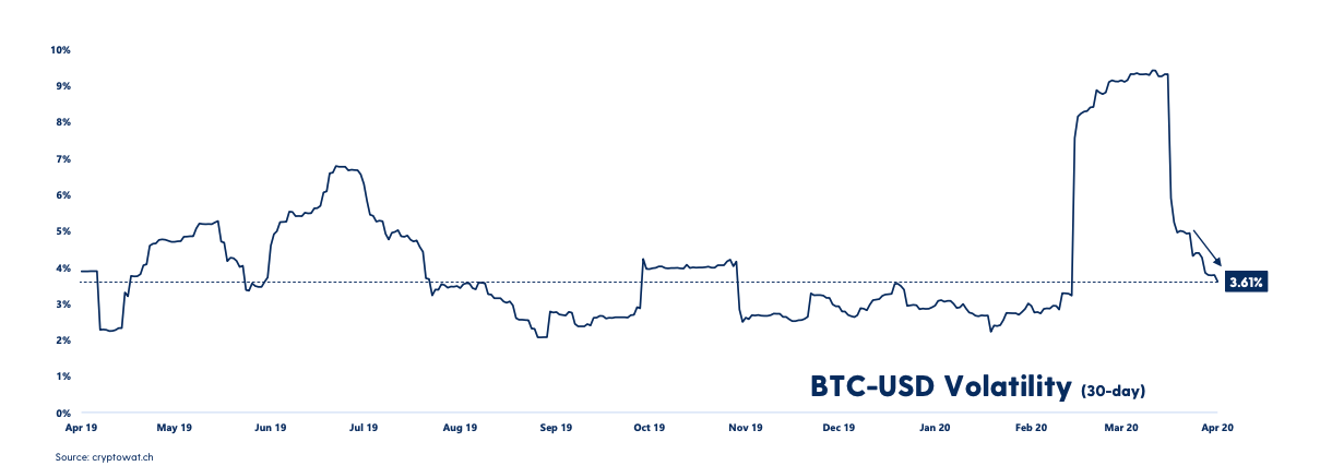 A big recovery going into the halving in three weeks could mean a perfect storm for Bitcoin. Confidence may still be low in the market, but it is recovering, and both volatility and volume seem to be getting back to normal levels. Lower volatility, in particular, indicates that the market is stabilising, and we may be past the worst uncertainty in the crypto market for now. However, with the global financial climate still in turmoil, volatility could easily pick up again if the stock market starts to drop and market participants should continue to act carefully.