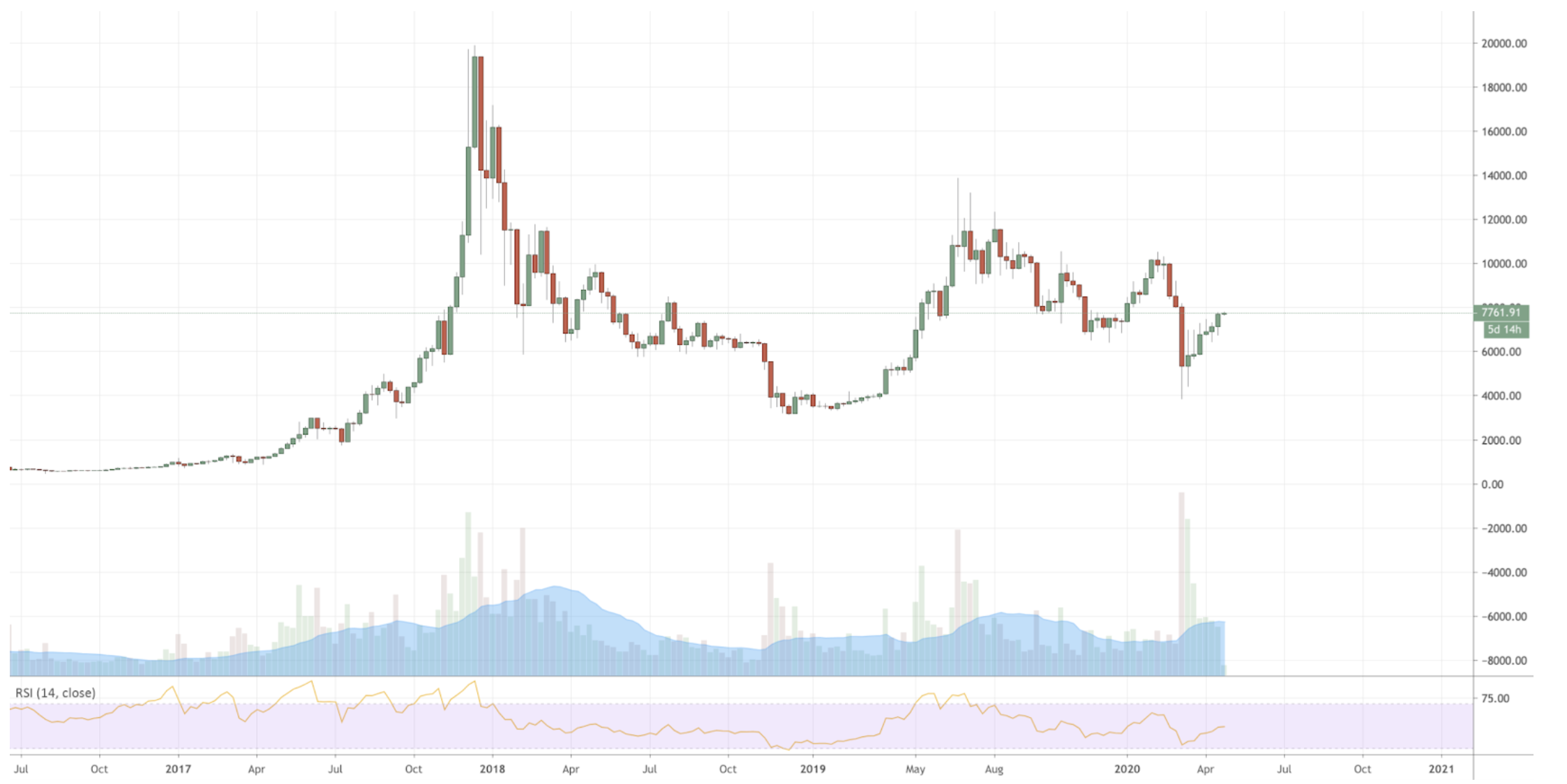 A strong week in the crypto market closed with a sixth green weekly candle. This hasn’t been seen since the start of the bull run at the beginning of 2019. Bitcoin is now up 15% in April and 7% so far in 2020, having started the year at around $7,100.