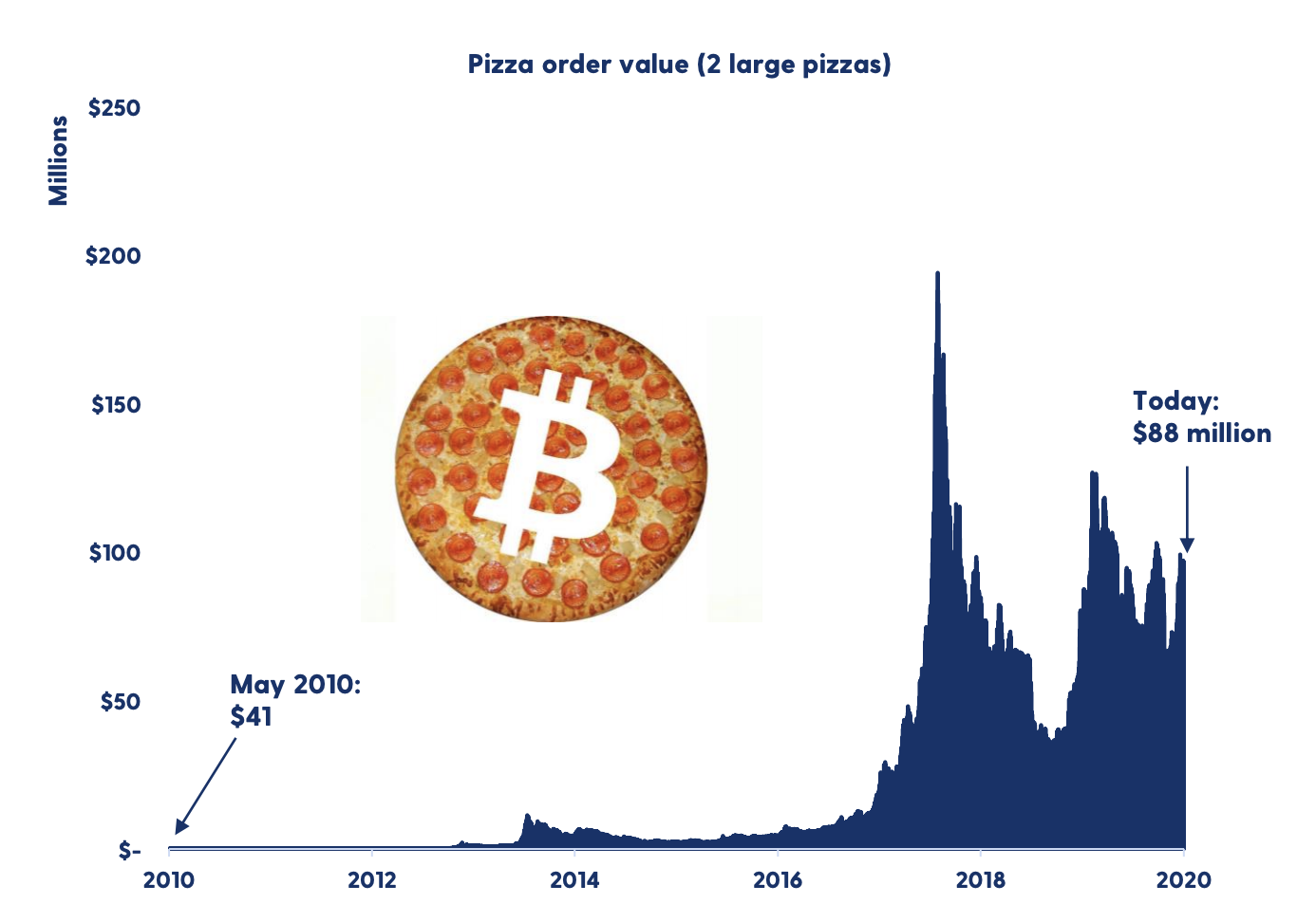 Last Friday marked the 10 year anniversary of the infamous Bitcoin pizza purchase – the first time anyone in the world bought a tangible good or service using Bitcoin. On 22 May 2010, computer programmer Laszlo Hanyecz bought two large pizzas for 10,000 BTC, which was at the time equivalent to roughly $41. Today, those 10,000 BTC would fetch you somewhere nearer $90,000,000 – impressive returns. Though we’re sure demonstrating to the world that Bitcoin is a viable means of exchange has been reward enough.