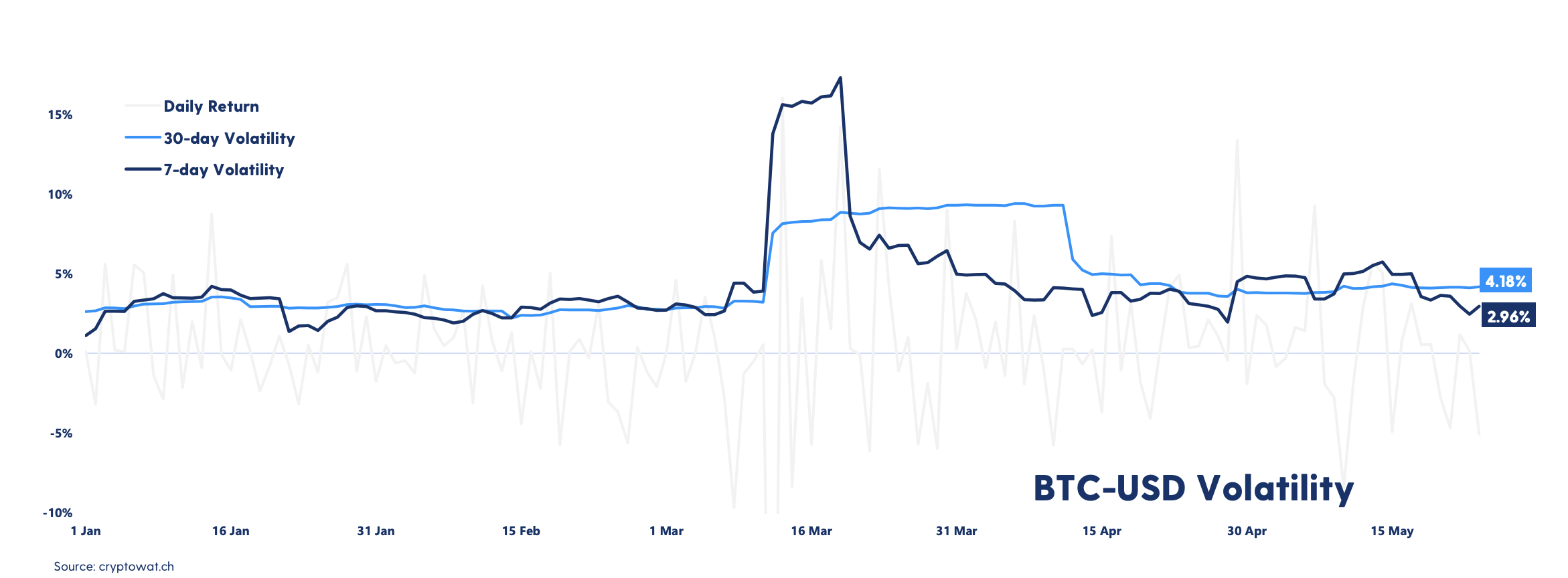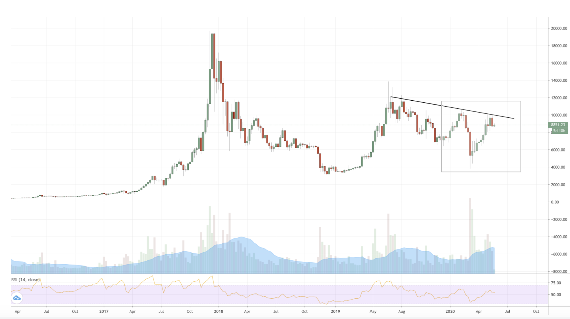 Looking towards a longer-term view, last week saw Bitcoin close $1,000 lower than it opened – erasing the gains seen in the previous week. In spite of its strong recovery after the initial market shock of COVID-19, at a macro level, we are still witnessing a marginal downward trend from the highs of May 2019.