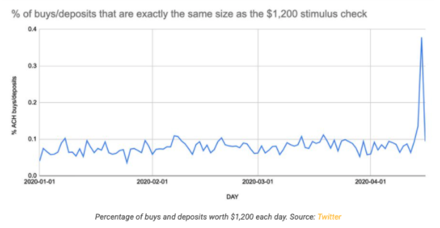 In an effort to support its citizens from the enormous economic hardship caused by the pandemic-induced lockdown, the US government gave Americans a $1,200 stimulus check. Shortly after the first payout, Coinbase CEO Brian Armstrong shared a graph of user activity of its exchange that indicated a fair few transactions of exactly $1,200 were made. A representative from Binance US told a similar story.